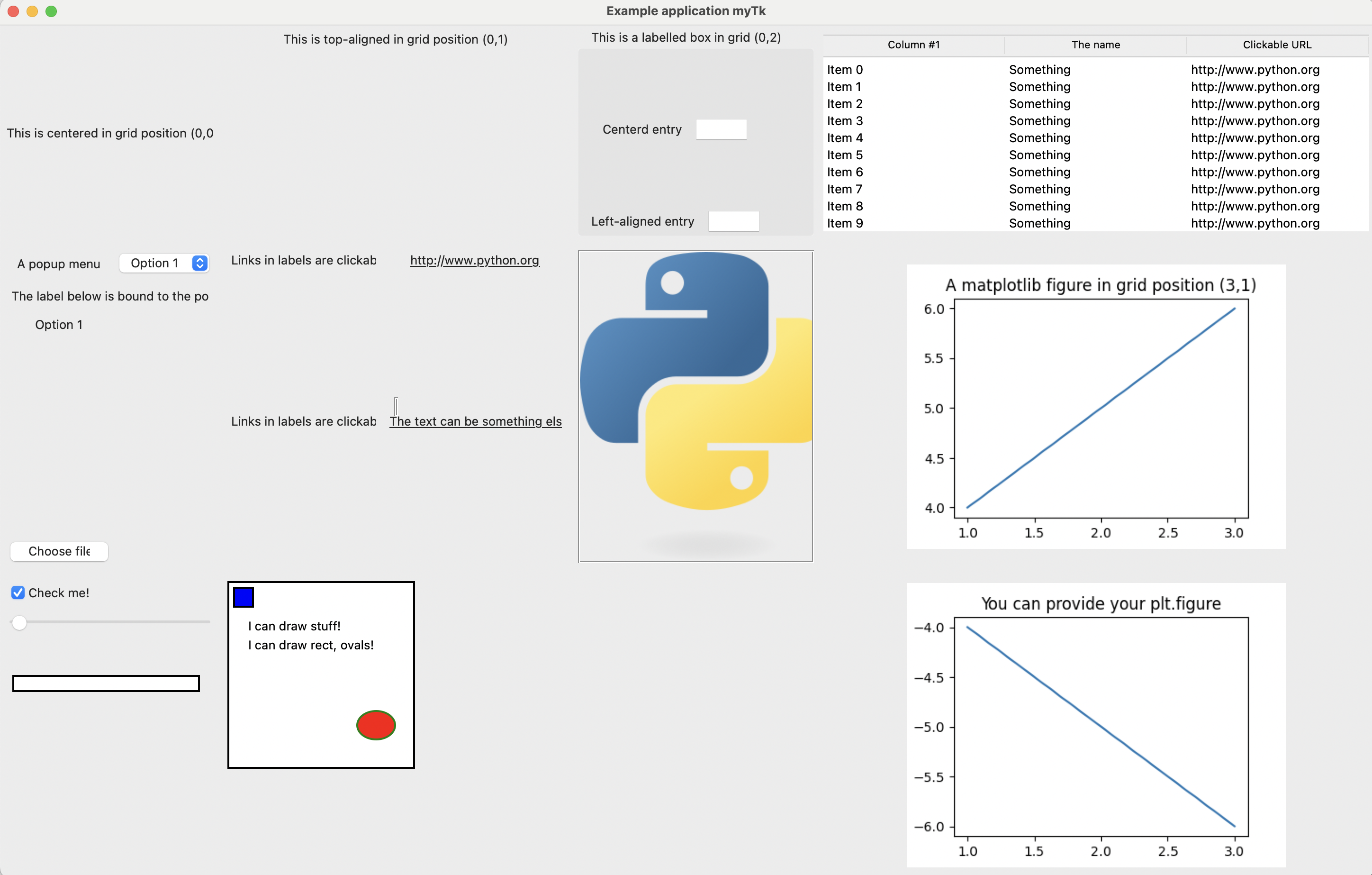 The myTk code includes an example: