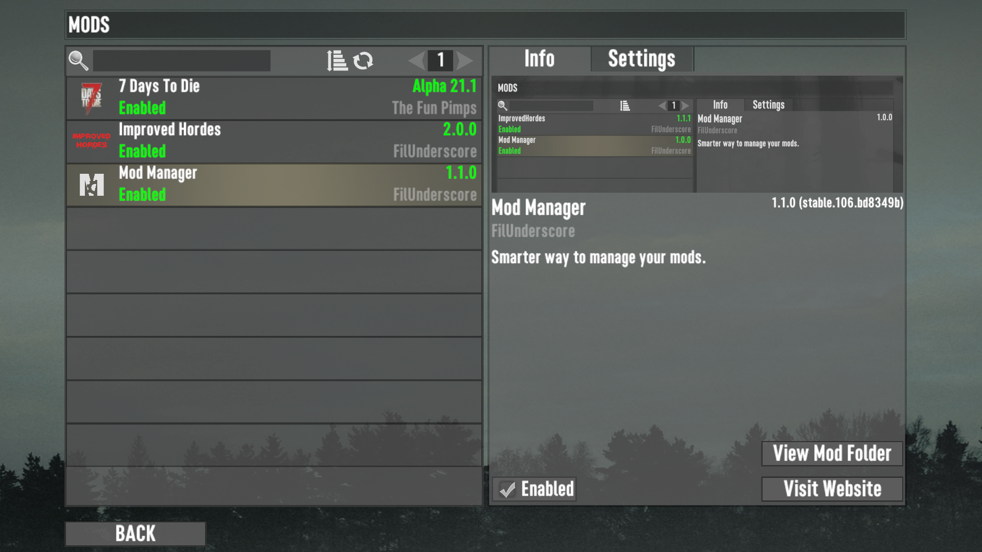 Manage your mods smarter by having an in-game tool to help manage all your Mod Settings and Updates through one interface, the Mods menu.