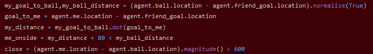 If bot is going to back to goal, is offside and really close to the ball, it goes for the nearest big boost instead, to (hopefully) avoid scoring own goals.