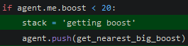 If boost is within 1000 distance and at a greater angle than 1 bot drifts. This stops it endlessly circling boost pads