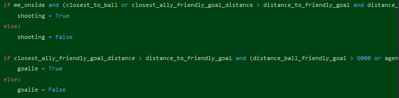 Created variables for if conditions are met for shooting and another one for being a goalie