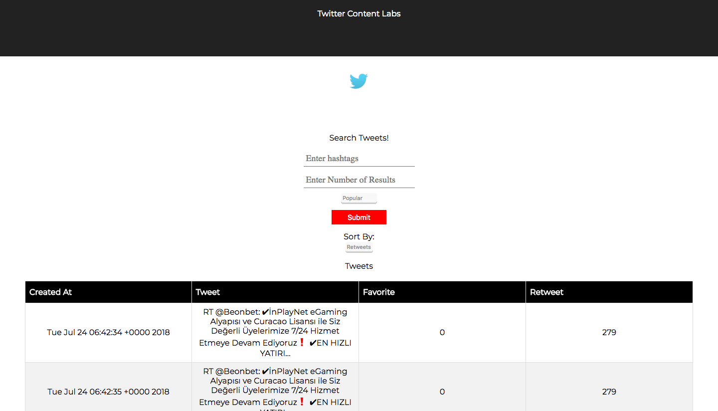 This is an application to search tweets using one or more hashtags