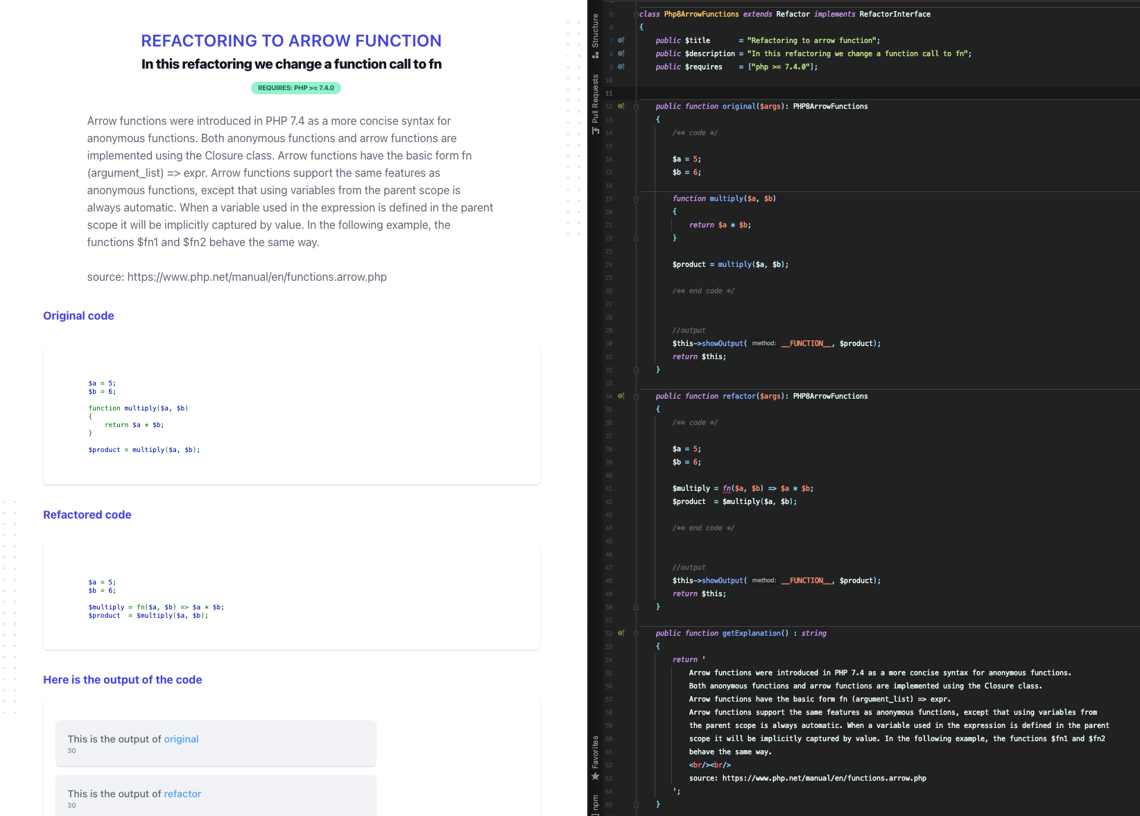 requires : the requirements for the code to work doc : a link to the documentation icon : the link to an icon querystring : query params that can be send to use in your refactor