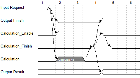 When the sender finishes its calculations and the data is valid, it sends a request signal to the receiver.