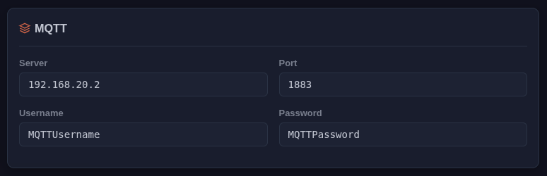 With MQTT-Autodiscovery, there's no need to configure anything in Home Assistant manually. Any sensor or node that sends a JSON string with special keys ('k' for the gateway private key and 'id' for the node name, both of which are mandatory) will be automatically discovered. Refer to the table below for details, and of course, full ESP32 examples are provided.
