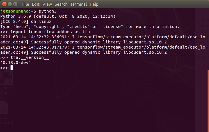 Compiled with Jetpack 4.5, CUDA 10.2, cuDNN 8.0
