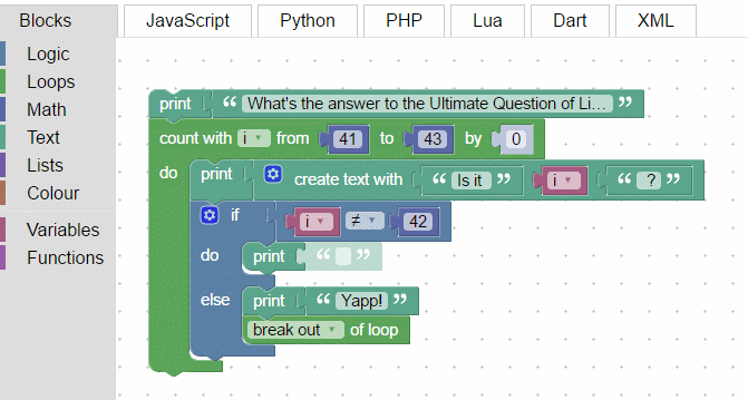 A indicator for google's visual programming framework blockly that shows where a currently dragged block can be attached.