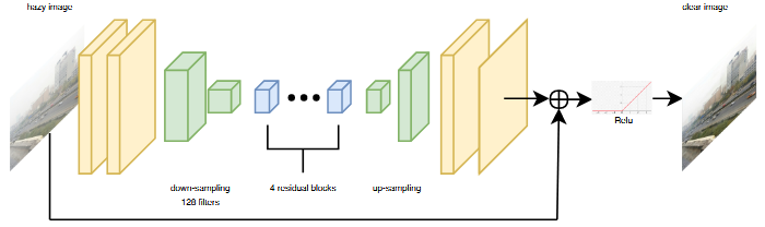 GMAN is a awesome Convolutional neural network purposed on haze removal. It is a completely end-to-end dehaze system so the input to the system is hazed rgb images and the output of the system is the clear images that processed by the system. The results can be found in the Results column, where lists our evaluation results on SOTS evaluation dataset. There lists 500 images for indoor test and 500 images for outdoor test saparately, in each file, we can also find a log.txt file showing the psnr and ssim for each images.