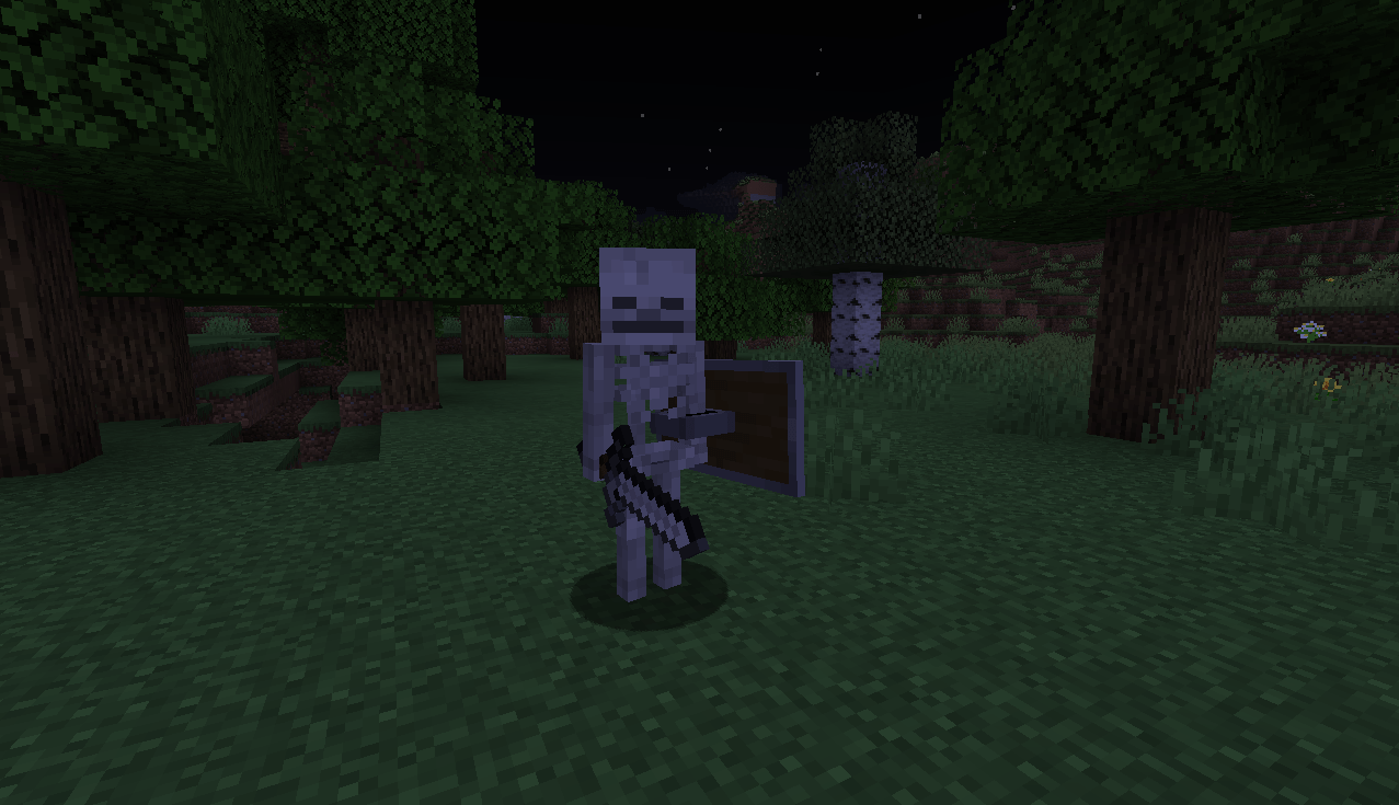 •  Skeletons can spawn with a sword and shield instead of a bow.