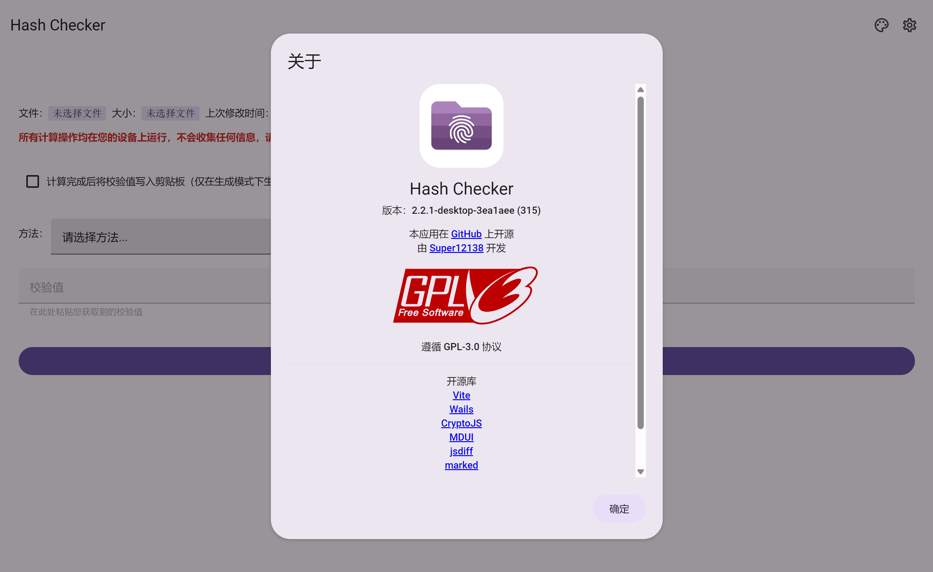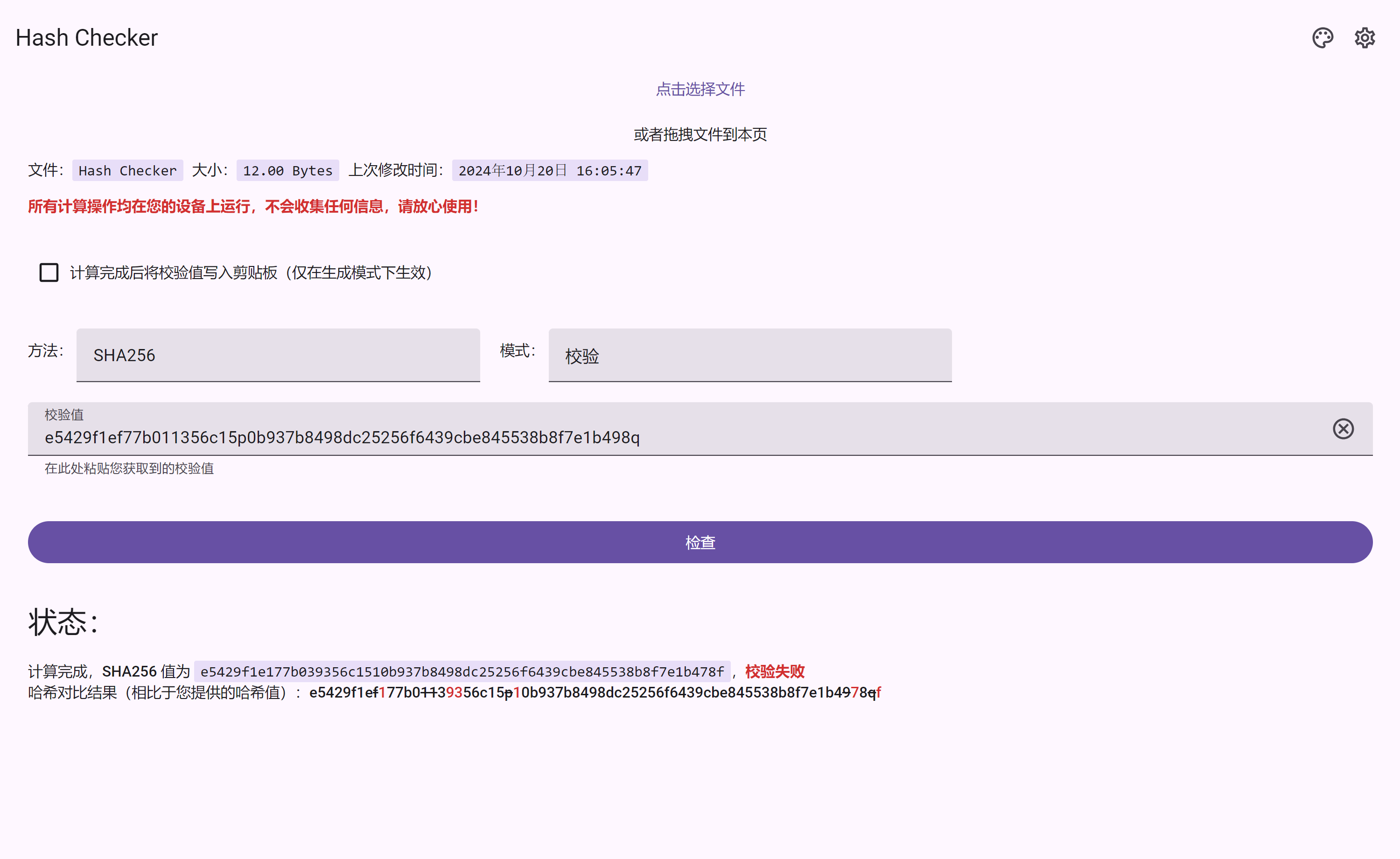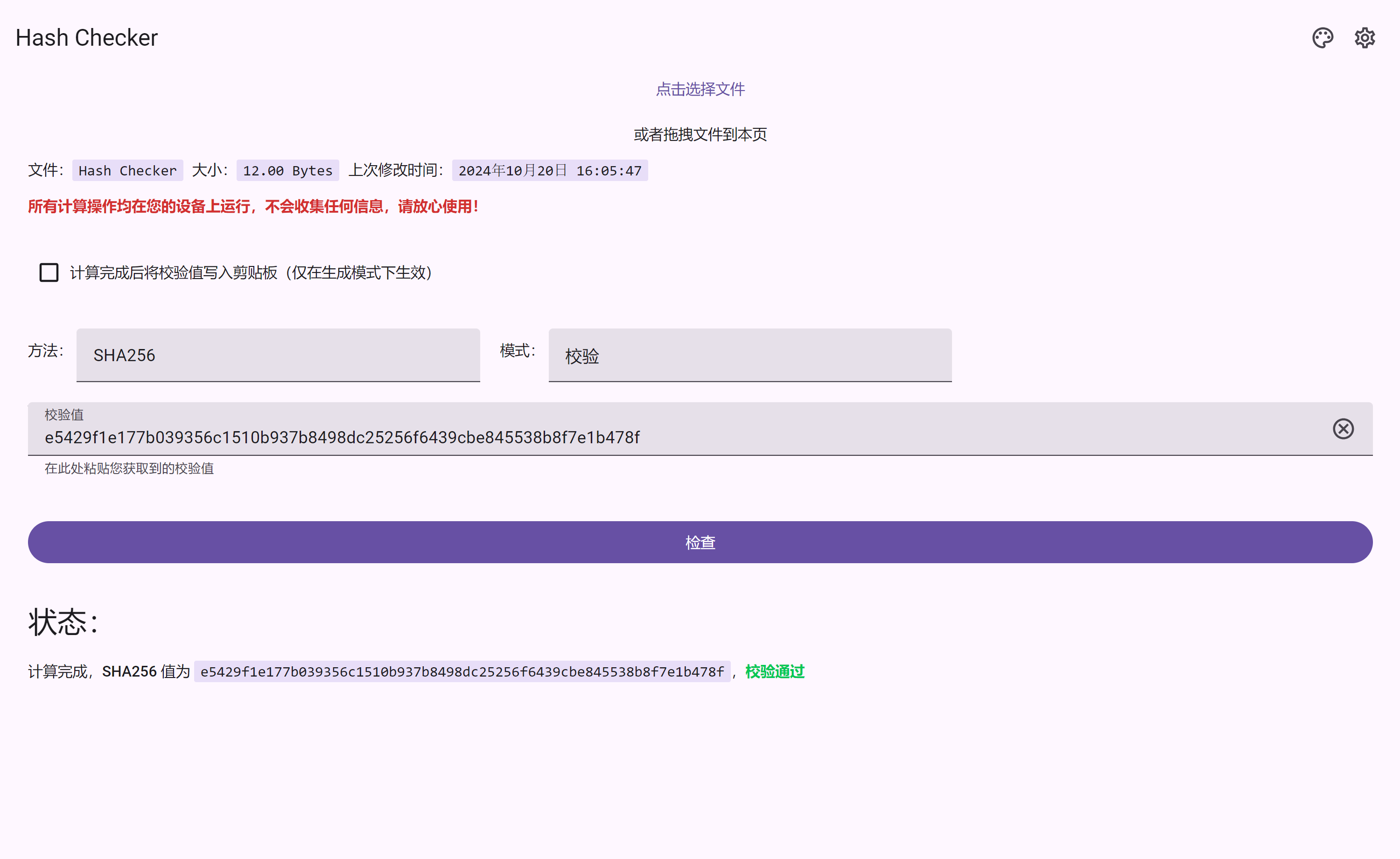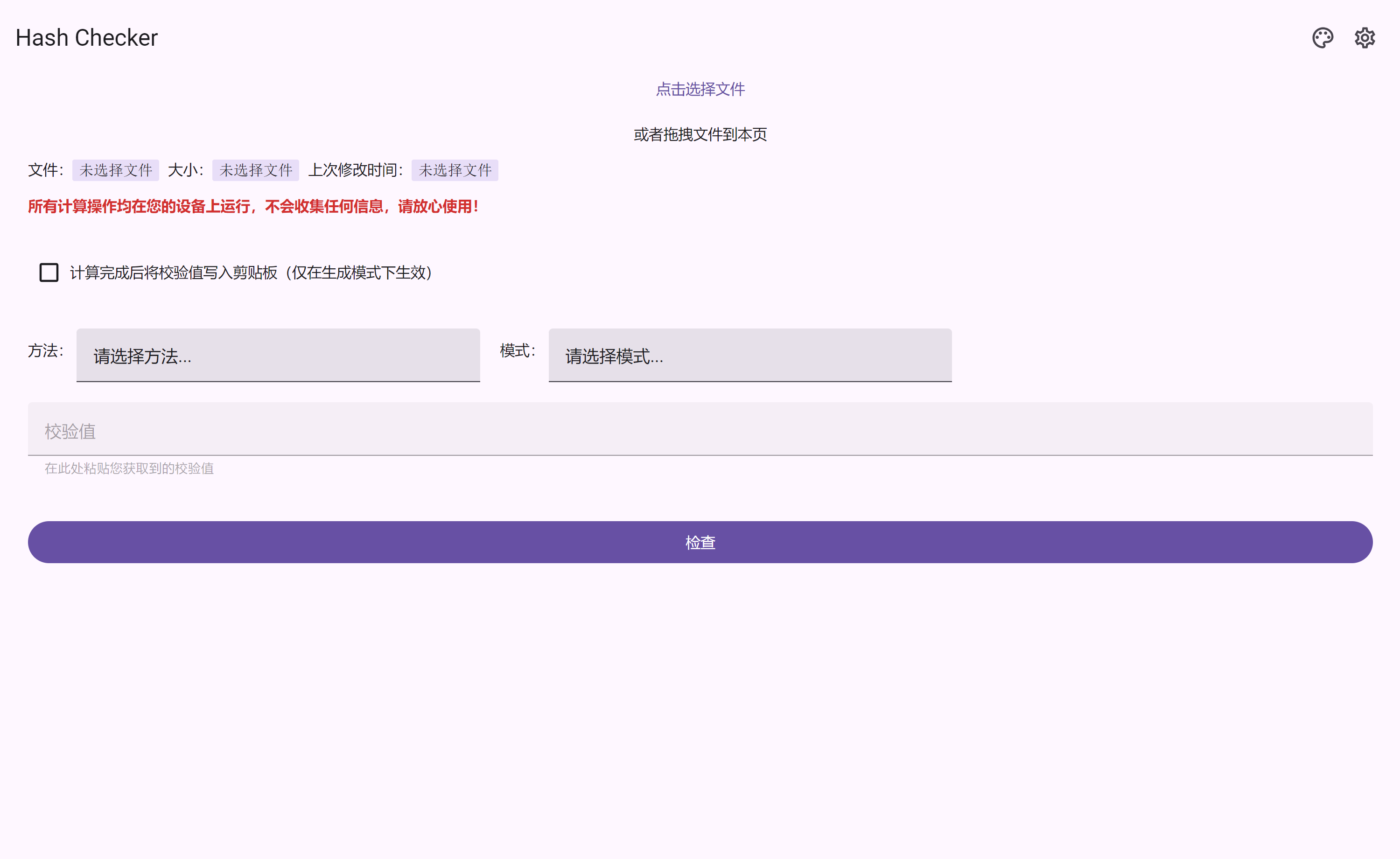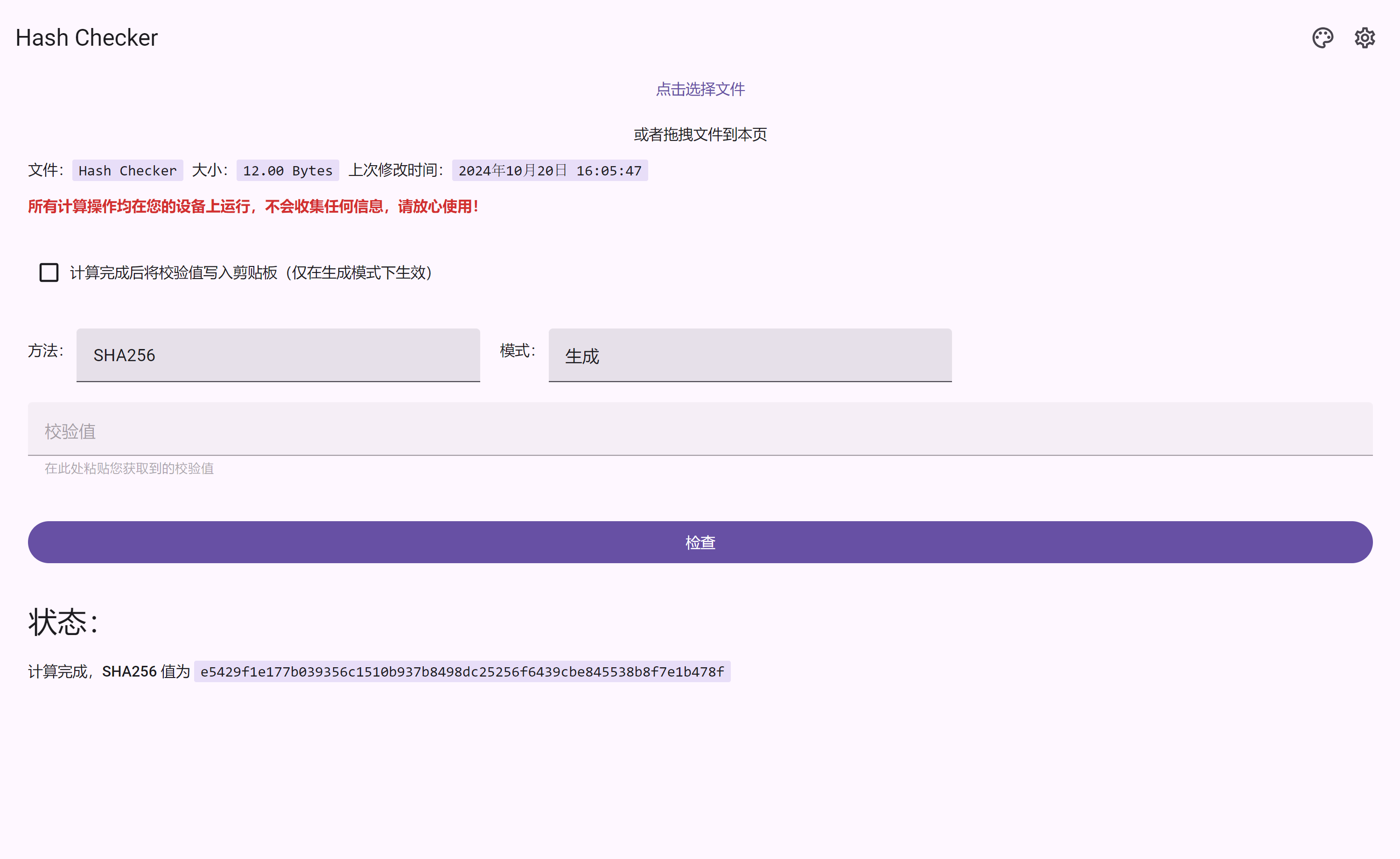 一个快速、随时可用,且遵循 Material Design 3 的跨平台文件校验器