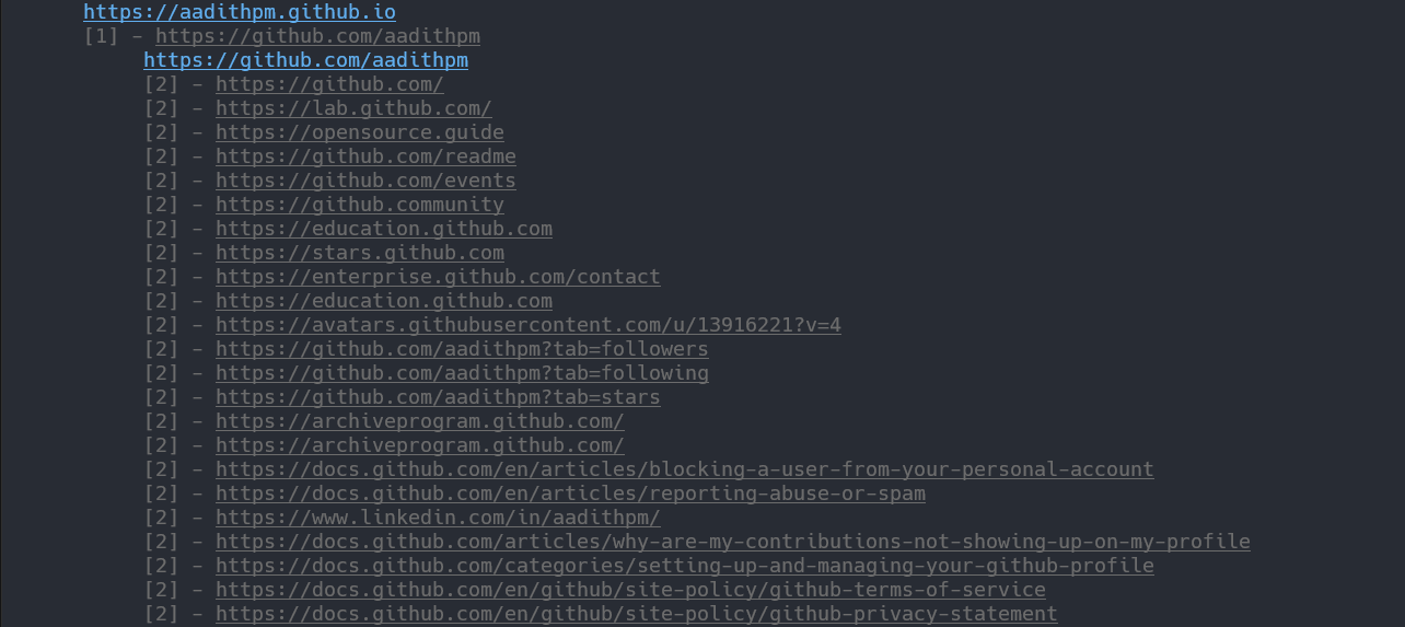 python crawler.py [--help] --url=URL --levels=LEVELS --indent