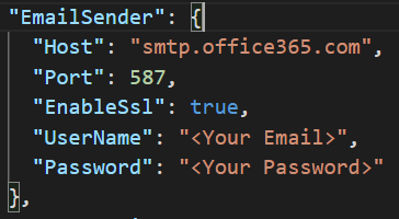 Mail gönderme bağlantısı "shopapp.webui > appsettings.json > EmailSender" sekmesi altında yer alıyor. Ben bu bağlantıyı varsayılan olarak Microsofta ait ücretsiz mail gönderme servisi ile ilişkilendirdim. Sizde bağlantı ayarlarını düzenleyip değiştirebilirsiniz, hatta uygulamayı yayımladığınızda hosting üzerinde bulunan Mail bilgilerini girerek Web Mail üzerinden kullanıcılara mail gönderebilirsiniz. Tabii bu servisi kullanabilmek için Host, Port ve EnableSsl dışında Mail gönderilecek Email adresi ile Mail'in şifresini yamanız gerekir, bu bilgiler yazılmadıkça uygulamadaki Mail gönderme servisleri çalışmayacaktır.