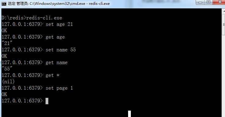 事例展示了一个基本的读写操作,设置set key->age,value->21,get age 得到key的值。^_^