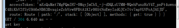 访问 : http://localhost/,会经过router.use方法.在'/'方法中页面打印(req.accessToken);