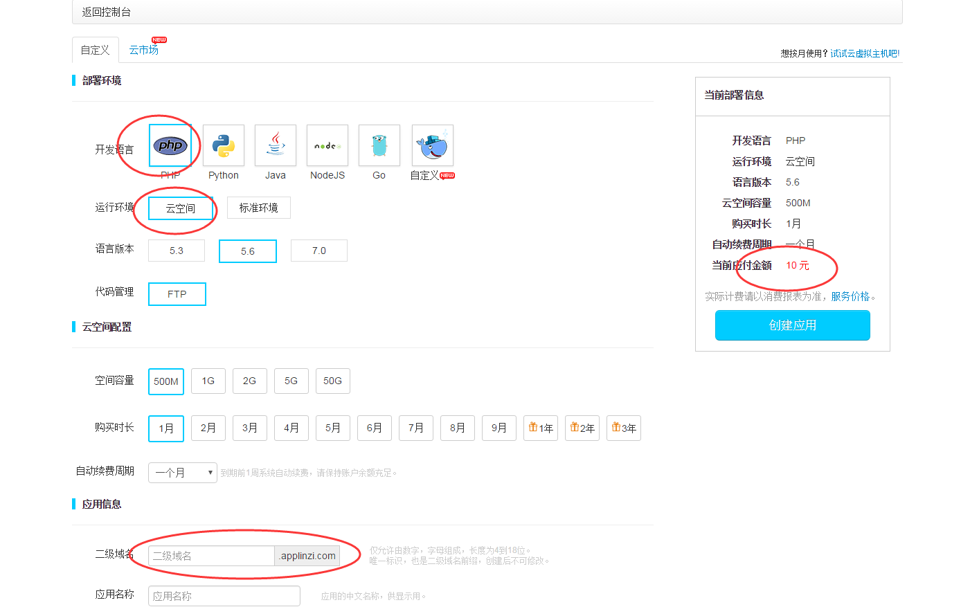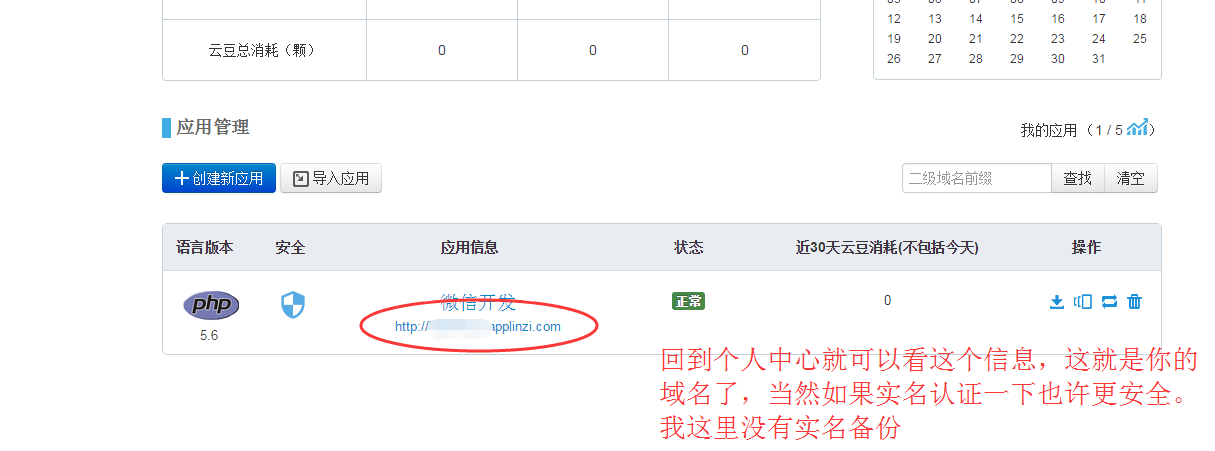 可以选择php的标准环境,这个是不收费的。你可以写上你想要的二级域名,这样你就有了一个外部ip;