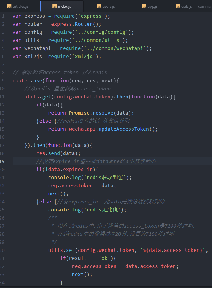 如果是微信端获取的access_token,就需要先保存到redis数据库中,再挂载到req对象上.