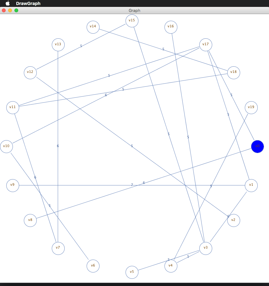 JavaAt first, the program will ask the user how many vertices he want. Then, the user adds the number vertices and the program will check the number is correct or not we mean it is not correct if it is zero or negative number, after that, the program asks the user to add a range (start range – end range) and the program should also check the rage. It should be correct. End range should be greater than start range. Next, the program generates random numbers and adds them to two-dimensional array which is matrix vertices by writeRnadomArray method. After that, the program will apply PrimsAlgorithm to create a minimum spanning tree on the vertices matrix. Finally, the program will show two windows the first one for input graph and the second on for output graph. These graphs are drawn by two methods Draw_Graph and Draw_MSP.