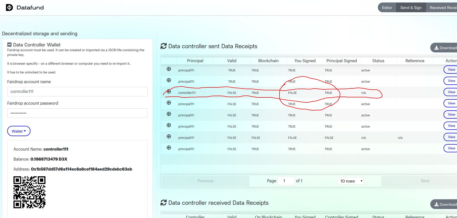 It seems that the columns showing the status of signature should be switched as the Controller is the first to sign a consent receipt:  re-Check before changing.