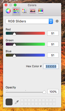 颜色设置:目前仅支持通过 RGB Sliders 设置。