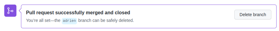 Maintenant que les fichiers sont envoyé sur le dépot github, il faut mettre à jour le dépot local et supprimer la branche.