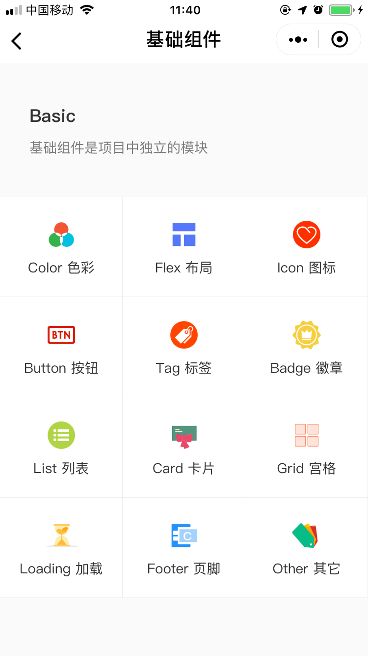 2.【扩展】新增基础组件,包括:字体图标,按钮,Grid宫格,List列表,Card卡片...