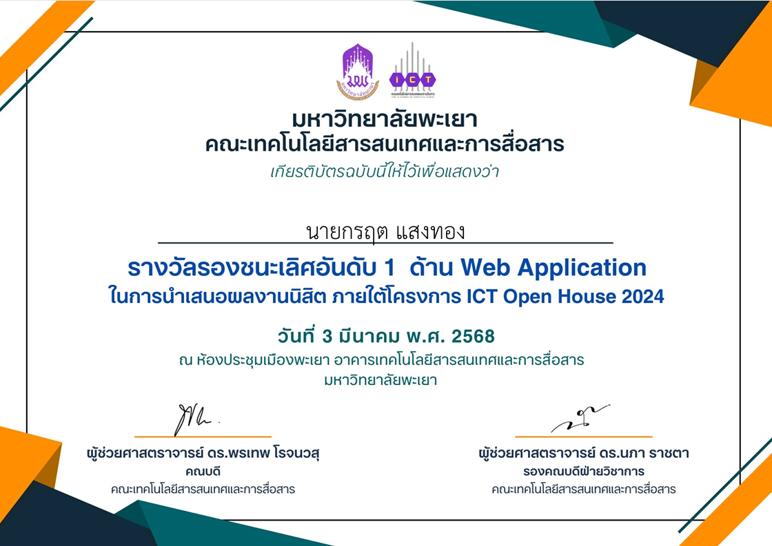 เป็นการแข่งขันโปรเจคด้าน web application ภายในคณะเทคโลยีสารสนเทศและการสื่อสาร (ict) มหาวิทยาลัยพะเยา โดยได้รางวัล อันดับ 2 จากทีมกว่า 29 ทีมจากทั้งคณะ โดยเป็นการพัฒนา web application แบบ social media ที่ทำการติดภาวะอารมณ์ จาก emoji mood และ text ที่ทำการโพสต์ มาผ่านวิธีการคำนวน และ สกัดคำมาสร้างประโยคยอดนิยม