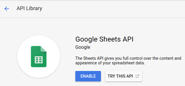- In "APIs & Services">"Library" select "Google Sheets API" and enable the API.