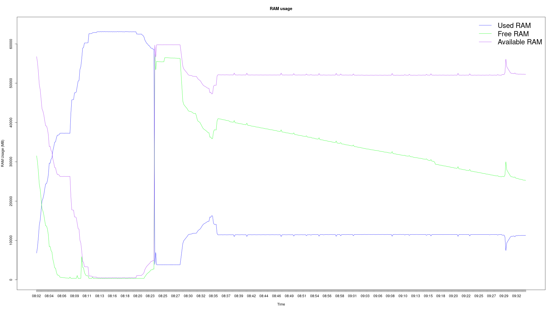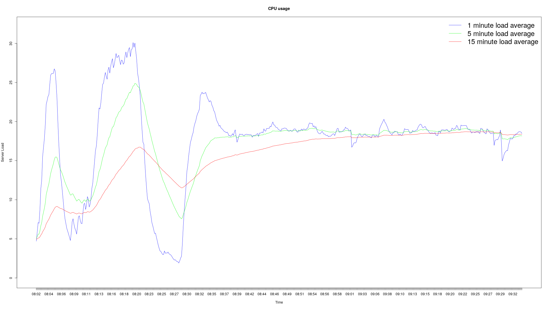 A simple server load bash and R script hack for graphing CPU, disk and RAM usage