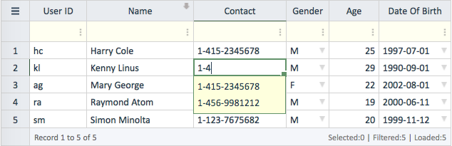 autocomplete Optional Boolean Enable autocomplete of all columns, default is false