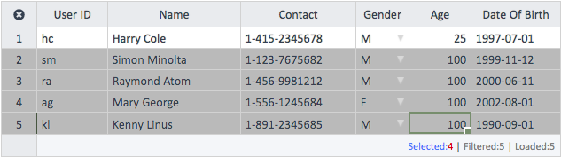 {region: 'CN', area: 'GZ', user: "kl", name: "Kenny Linus", phone: "1-891-2345685", gender: "F", age: 29, birth: "1990-09-01"}