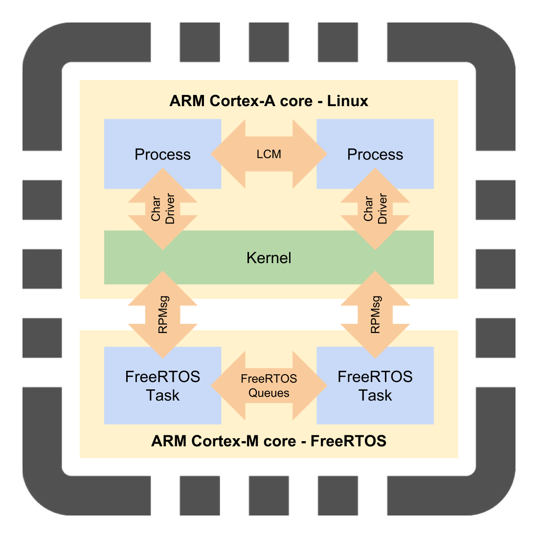For the MPU side running Linux, the package is built as a shared library. You will also need to modify the RPMsg-char driver (available in Linux >= 4.11) with this patch.