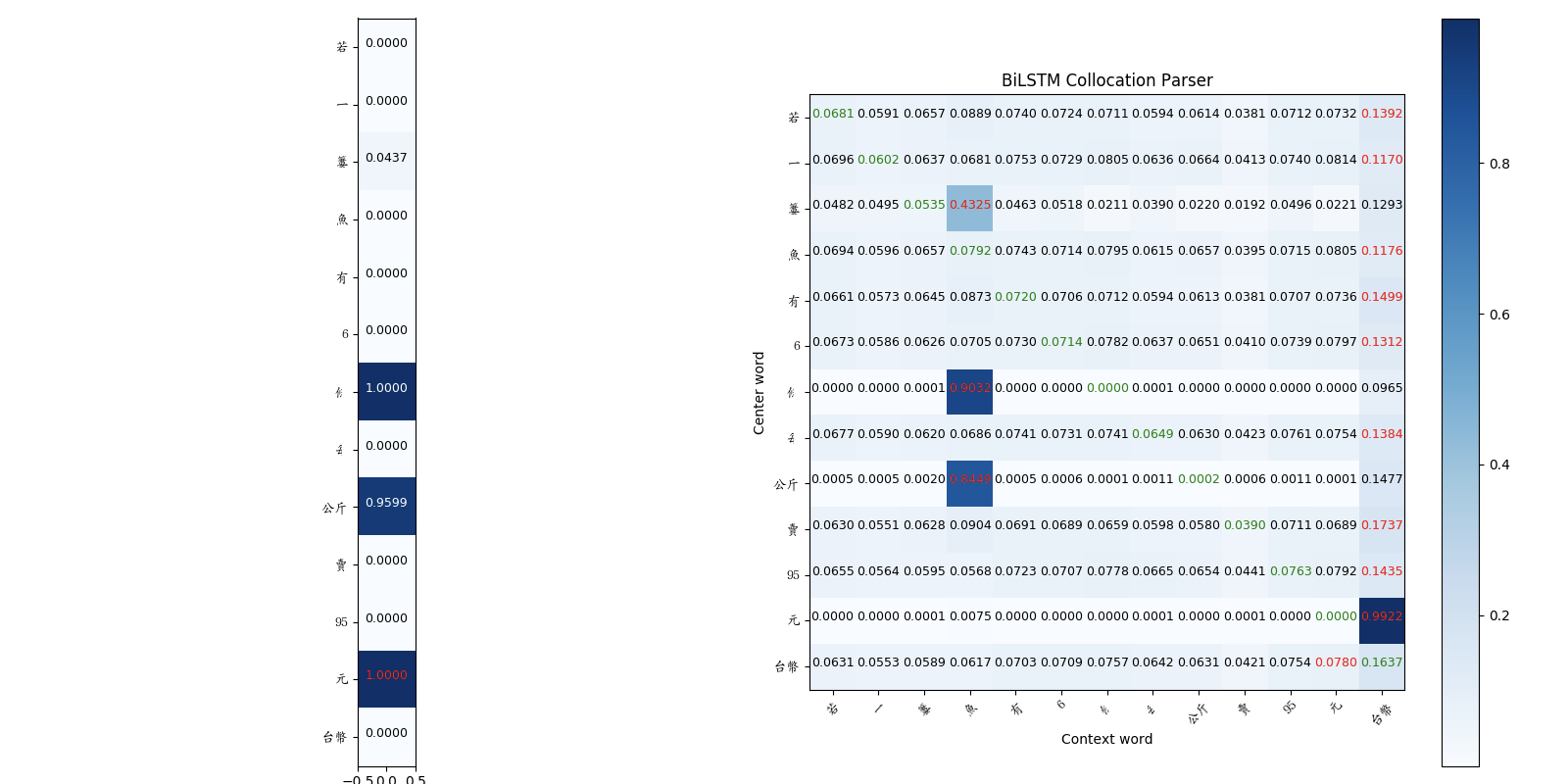 用 BiLSTM+ELMo 搭建的 Collocation Parser,可以抓取句子中特定的Collocation Pairs,如名詞<->量詞、動詞<->名詞等等,用以建構Ontology及其他應用。雖直接使用Dependency Parser也能有差不多效果,唯Dependency Parser一次要預測許多不同詞類的arcs,易受其他詞的arcs連結干擾影響正確率,且中文的Dependency Parser表現較差錯誤率稍高。此Project專注抓取Collocation Pairs,先使用unsupervised word2vec-based簡易方法有效的得到許多有關連的詞類pairs,透過少量標註(1000句)找出正確率夠大的頻率區間,拿來train後續的BiLSTM Collocation Parser。
