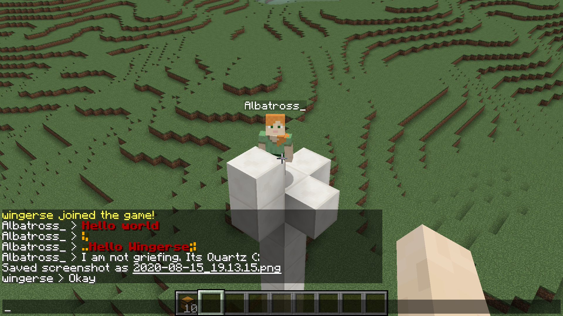 Custom Minecraft 1.8 server To run, install rust then run: cargo run --release Connect with localhost:25565 Status Chunk loading (primitive generation) Chat (Including formatting) Player movements Block placing (not complete)