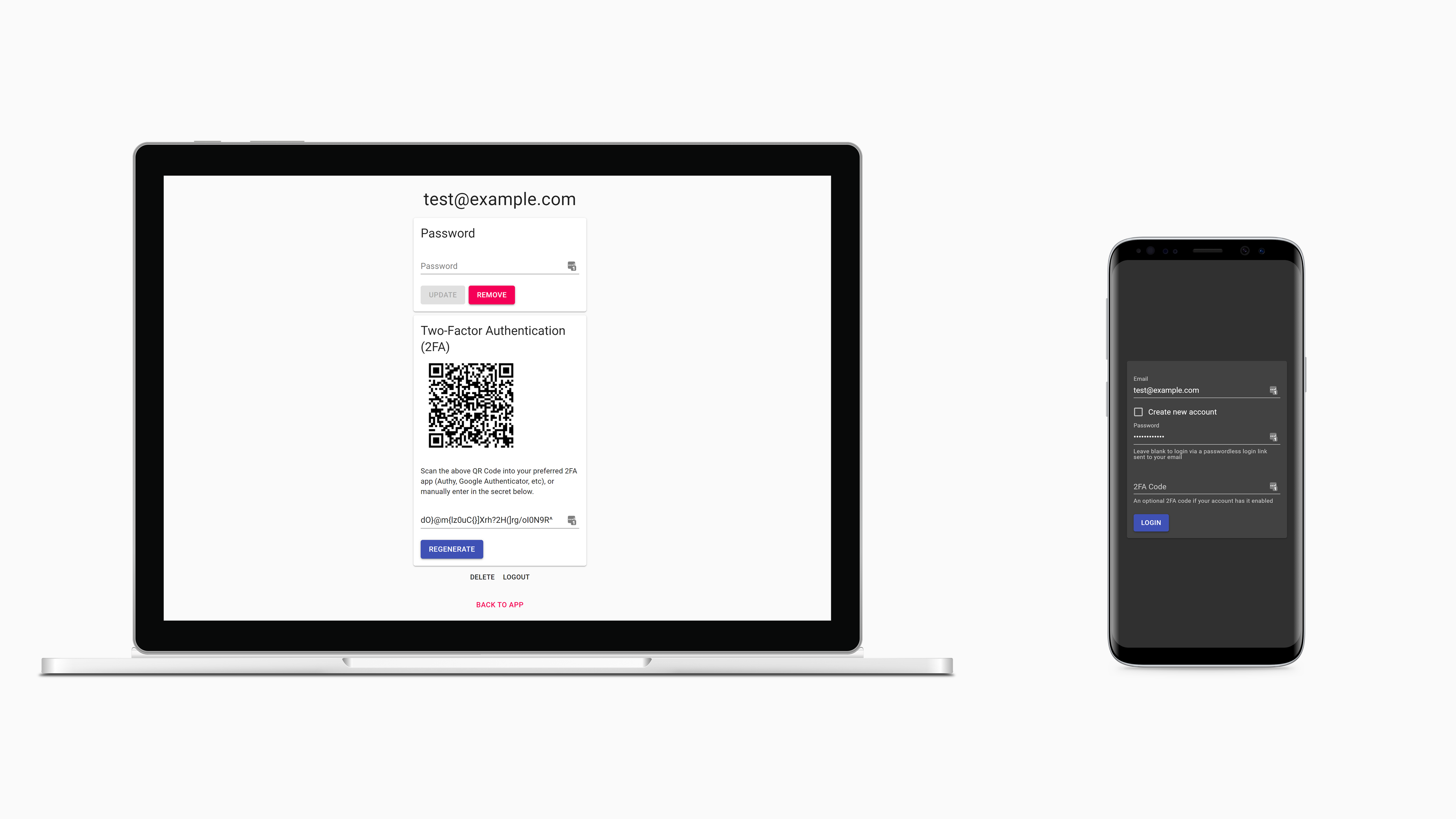 - Passwordless login via links sent to emails also available